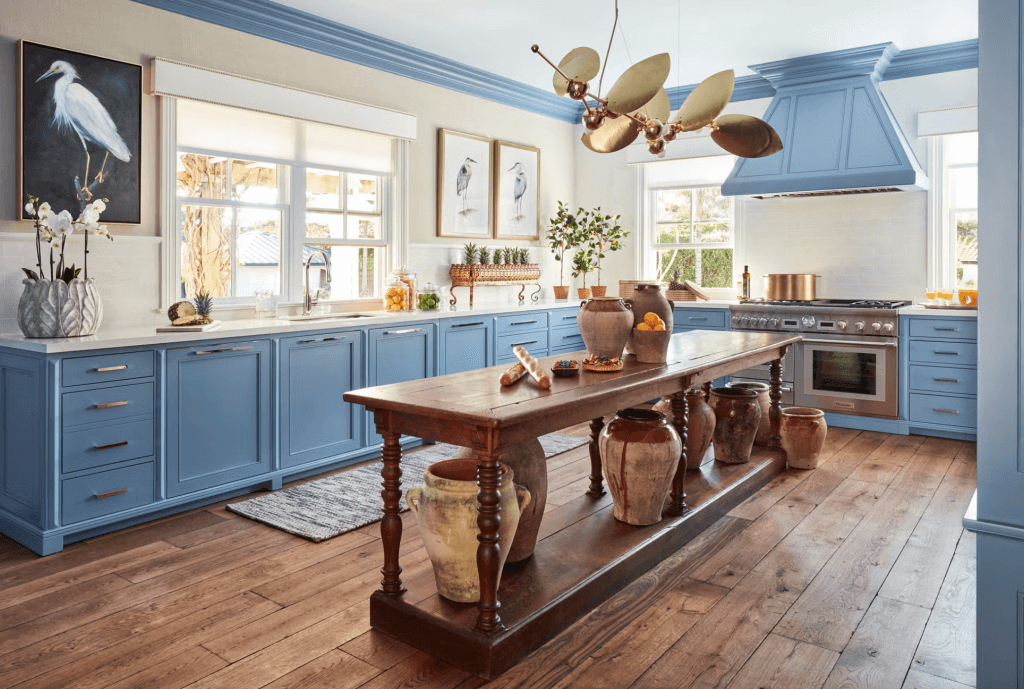 Blue is known for its calming effect, making it an ideal kitchen color. A pale or powder blue can bring a refreshing coastal charm, especially when paired with white countertops or open shelving.