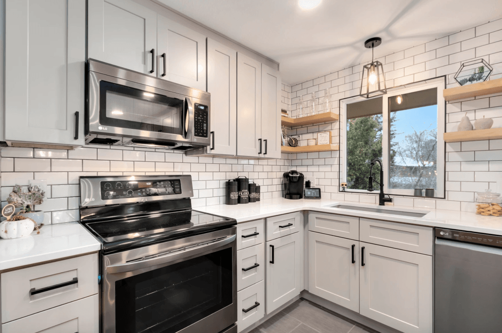 White remains a timeless favorite for good reason. It reflects light beautifully, creates a clean and airy atmosphere, and pairs effortlessly with any countertop or backsplash. White cabinets are perfect if you want a versatile kitchen that will never feel outdated.