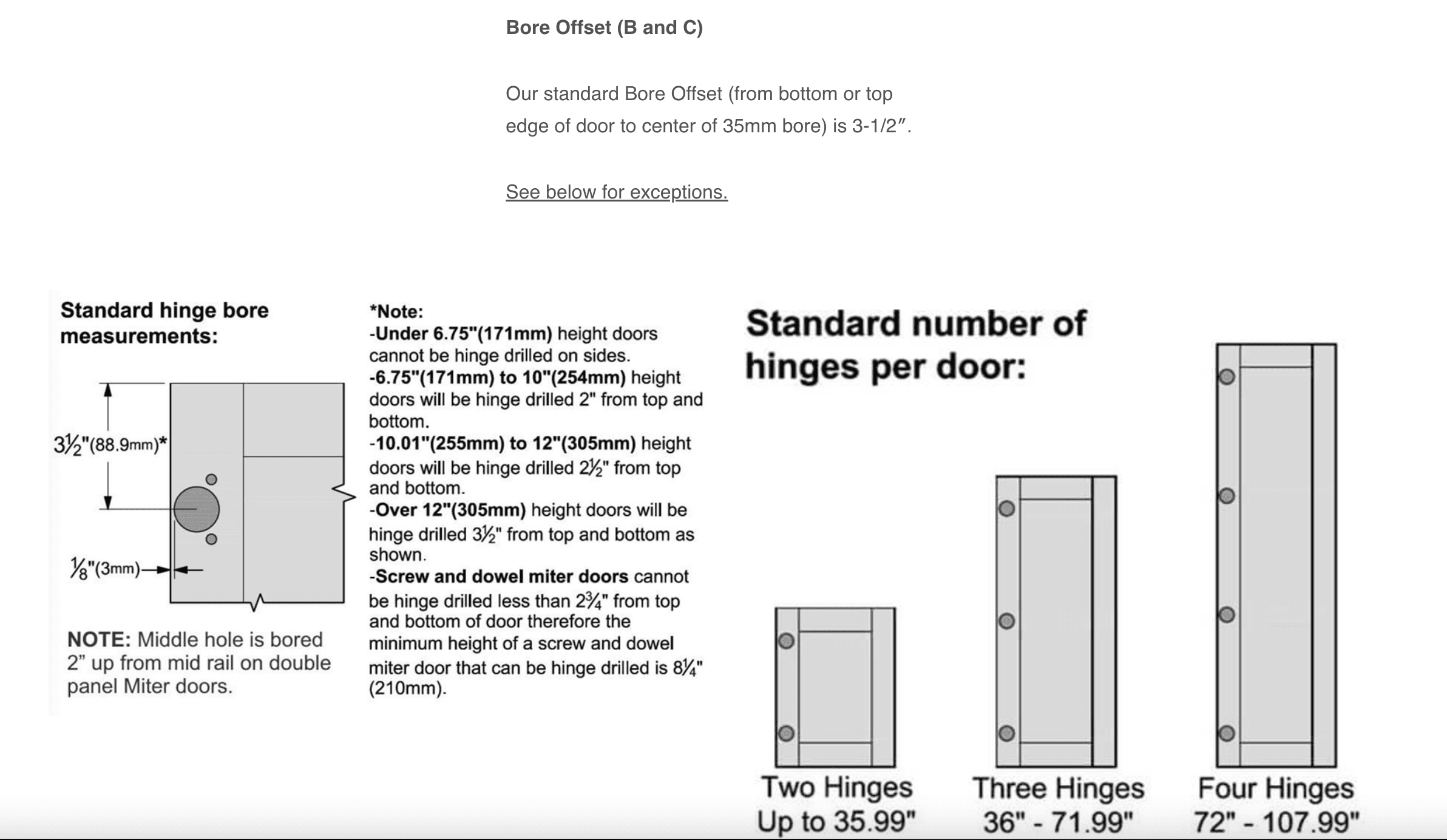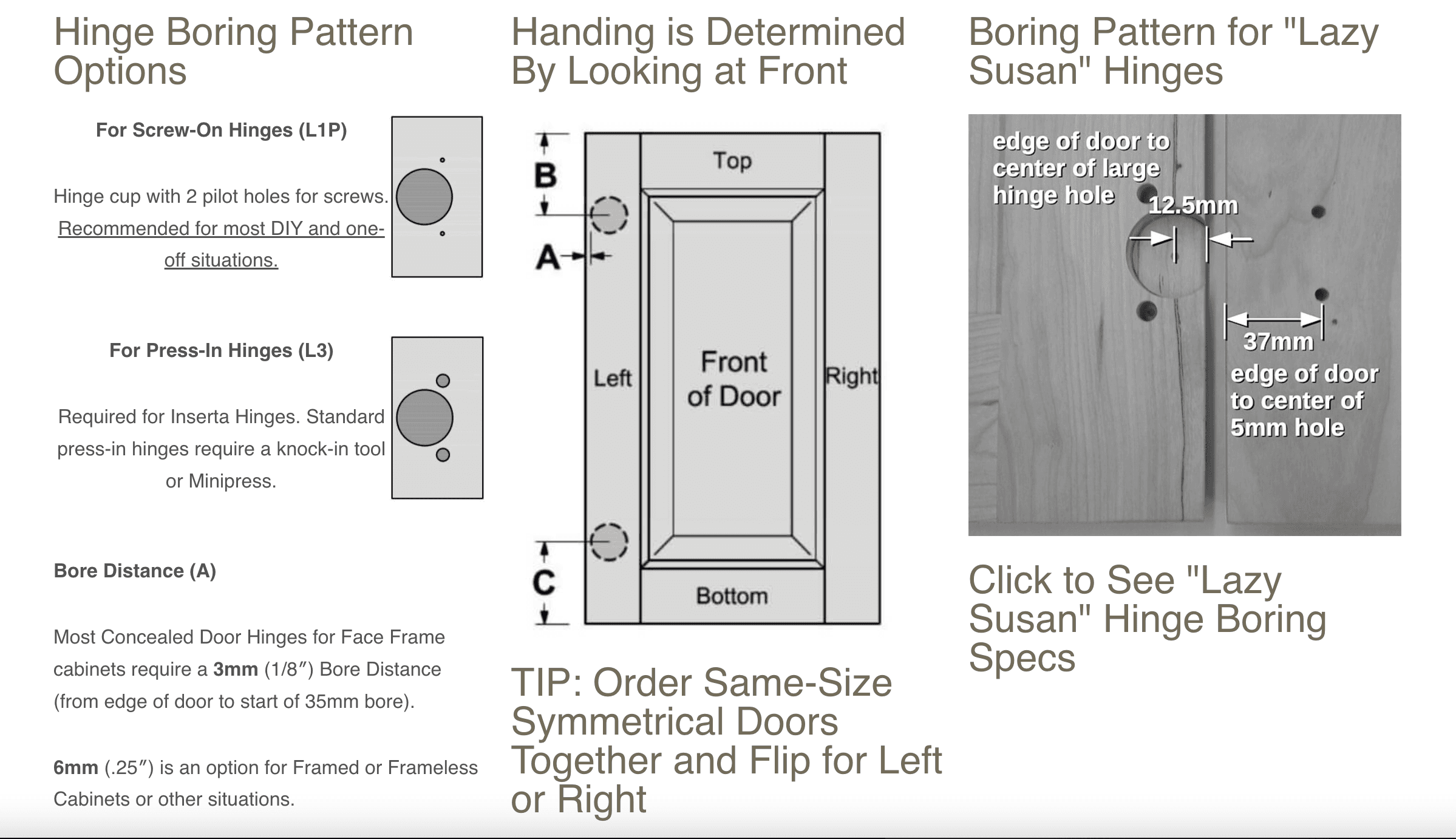 Optional hinge cup boring available in three configurations.